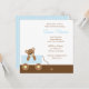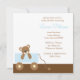 O convite para chás de fraldas ou o anúncio de nascimento ou adoção de um novo bebê apresenta uma ilustração de vetor adorável de um urso marrom em uma carruagem. Disponível em azul, rosa ou verde. Cores personalizadas disponíveis por solicitação.
