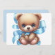 Crie um convite de chá de fraldas exclusivo e especial com azul como a cor focal. Teddy Bear Blue design na frente, juntamente com os detalhes do seu evento, incluindo o convidado de honra, a futura mãe, informações sobre o local, o anfitrião e o registro no verso. Use a modelo para personalizar. O convite do chá de fraldas Azul do Urso de Teddy.