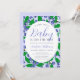 Este modelo de convite de chá de fraldas de mirtilo, apresenta mirtilos azuis em cipós verdes com flores brancas. Uma letra moderna de escrita de caligrafia adiciona um toque de capricho a este doce convite de chá de fraldas de verão.