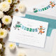 Banner azul de "chá" mantido por guaxinim e raposa ilustrados neste doce convite de chá de fraldas. Cores de fundo editáveis na frente e no verso. Também disponível em variação de cor neutra do gênero e variação rosa. Ilustração original de Becky Nimoy.