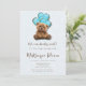 Convites Chá de fraldas Azul Dourado Balão de Urso Teddy