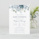 Convite para Chá de fraldas Azul com Derrame Floral de Cor Água Elegante. Este convite moderno para o casamento apresenta um belo marinho de aquarela pintado à mão, azul empoeirado e rosas de creme com folhas verdes de sábio. Os itens correspondentes estão na Coleção de Casamentos Florais de Azul Dusty.