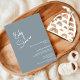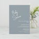Este simples convite de chá de fraldas azul empoeirado permite-lhe receber convidados para o seu evento. Trata-se de um simples escrevendo branco, escrito à mão, com uma letra simples. Personalize inserindo nomes, datas, horários, locais e outros detalhes.