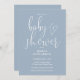 Convites Chá de fraldas Azul Dusty de Script Elegante