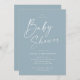 Convites Chá de fraldas Azul Dusty do Script Moderno
