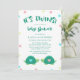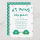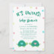 Convite adorável do chá de fraldas dos gêmeos que caracteriza tartarugas gêmeas com corações bonitos em seus escudos, em um azul e em um rosa. O fundo é polvilhado com os confetes em cores de harmonização, e tem pias batismais encantadores no verde de jade profundo.
