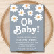 Você está planejando o chá de fraldas de um menino? Este belo convite para o chá de fraldas é decorado com margaridas brancas e tipografia de na moda retro em um fundo azul.