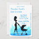 Estes convites adoráveis apresentam um moderno, mas elegante design de linha do horizonte urbano em tons de azul com uma silhueta de uma mãe empurrando um carrinho. Faz um convite excelente para uma mãe que ama e vive na cidade!