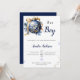 Bem-vindos a uma elegância clássica neste Natal com nossa coleção de Chás de fraldas Modernos Minimalistas. Apresentando o título "É um menino" com uma bela fonte desenhando o olho como a característica próxima ao pop solteiro de cor azul pastel no bauble em forma de lágrima de Natal. A escuridão do branco e do preto com atenção a fontes detalhadas e a tipografia é perfeita para os Chás de fraldas de inverno. O nosso Convite para Chá de fraldas do Ornamento Azul de Natal é uma forma clássica e elegante de convidar os seus convidados a celebrar a alegria de Natal com a chegada iminente de um novo bebê.
