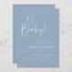 Este elegante convite ao chá de fraldas apresenta um design azul empoeirado mínimo com caligrafia branca moderna. Vai fazer o convite perfeito para o chá de fraldas minimalista do seu bebê. Use os campos modelo para adicionar suas informações e personalizar este convite. Entre em contato com o designer se precisar de assistência para adicionar suas informações.