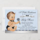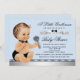 Um chá de fraldas de homem pequeno com um adorável menino vestido com uma fralda preta e arco em um bonito azul e fundo preto. Você pode personalizar facilmente este convite de chá de fraldas de homem giro para seu evento simplesmente adicionando seus detalhes no estilo de fonte de sua escolha. Você também pode alterar a cor de fundo.