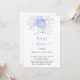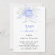 Para um Chá de fraldas celebrando um menino. Um fundo branco na moda. Decorados com flores claras, azuis e brancas, rosas e folhagem de prata falsa. Personalize e adicione um nome e detalhes da parte.