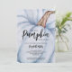 Uma grande abóbora azul destaca esses convites para bebês bonitinhos com "Um pequeno abóbora está a caminho" na frente com o registro, rifa de fralda e livros para informações sobre bebês nas costas. (Disponível em rosa e menta, também.) CORRESPONDENTE a itens na nossa coleção.