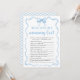 Este divertido jogo de chá de fraldas apresenta um arco azul encantador que combina perfeitamente com o tema do seu chá de fraldas. Convidados a responder perguntas sobre as mamães a serem, testando seu conhecimento sobre suas coisas favoritas, pecados e fatos divertidos. De desejos favoritos a seus passatempos, este jogo oferece uma forma moderada de celebrar a ligação especial entre a mamãe e os seus entes queridos. É um quebra-gelo ideal, reunindo convidados numa competição divertida para ver quem conhece melhor as mamães. O elegante arco azul no topo gravatas o jogo lindamente na decoração geral do seu evento. Este jogo não só vai entreter convidados, como também criará memórias duradouras para as mamães!