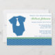 Um convite de chá de fraldas de um homem moderno. Apresentando um bonitinho cortador azul e ilustração de gravata. Mostrado em azul, verde e branco. Personalize facilmente a sua festa!