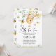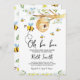 Celebre o seu pequeno mel com este adorável Convite à Chá de fraldas Oh BaBee. Apresentando abelhas buzinadas, delicadas flores brancas, verde macio e uma colmeia encantadora colada em um galho de árvores. Com tons amarelos quentes e detalhes inspirados na natureza, ele é ideal para chás de fraldas de verão, e funciona lindamente para celebrações de meninas, rapazes ou neutras de gênero. BBS200