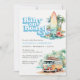 Este design de convite para chás de fraldas tropical apresenta um tema lúdico e de beleza "bebê no conselho" com uma estética de aquarela que captura as vibrações de "pouso" de uma fuga costeira. No topo, o texto é estilizado criativamente ao lado de uma prancha de surfe colorida aninhada em folhagem tropical e flores vibrantes de hibisco, dando um tom festivo e alegre. Abaixo, um ônibus vintage, laranja e branco, da Volkswagen carregado com pranchas de surf adiciona um talento nostálgico e aventureiro, perfeito para celebrar uma nova chegada com uma reviravolta de verão ou inspirada na ilha. As matizes pastéis suaves e as ilustrações caprichosas tornam este design ideal para chás de fraldas de praia ou celebração de destino, apelando para aqueles que amam boho, tropicais ou estilos retrorreflectores. Disponível como placas impressas ou um download digital instantâneo.