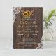 Design de chic exclusivo para um convite para o Chá de fraldas BaBy-Q com flores de aquarelas, cantos de rendas, tudo em um celeiro antigo. Use a ferramenta Personalizar para adicionar suas informações. Itens correspondentes podem ser encontrados na minha Coleção de Locais de Madeira de Flores do Sol de Boho.