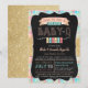 Casais Convite para Chá de fraldas Baby-Q com brilho dourado, xadrez e elementos de quadro