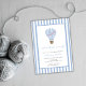 Celebrar um adorável chá de fraldas de bebê com o tema do chá de fraldas de balão de ar quente elegante, tema viagem chá de fraldas, nossa design de coleção " aventura", adorável e simples decoração de balão azul e quente com estrelas. Design com padrão de listras azuis minimalista. Você pode personalizar seu próprio texto por meio do botão "personalizar este modelo".
