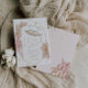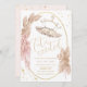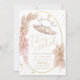 Convite para chá de fraldas Ballerina, com cor rosa-pincelada e dourada. Um tutu, um quadro dourado acentuado com grama-pampas e flores, e um confete dourado se junta para um chá clássico que certamente impressiona!