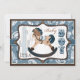 Impressão de bandana azul e design de convite para chá de fraldas de cavalo de balanço.