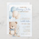 Convites Chá de fraldas Beary Cute Blue Balloon Teddy Bear