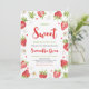 Celebre o seu pequeno com o nosso Convite ao Chá de fraldas "Berry Sweet". Esta design adorável apresenta morangos vermelhos brilhantes, margaridas alegres, e uma vibração branca fresca. Quer você esteja planejando um evento de primavera ou verão, este convite dá o tom para um cheio divertido e temerário de celebração de amor e alegria. Torne seu chá mais doce com um design tão fresco e alegre quanto a celebração em si! BBS1038