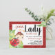 Chamadas de chuveiro de bebês de joaninha vermelha e preta com uma joaninha adorável com arco vermelho giro em uma folha e um fundo brilhante vermelho. Esses convites para chuveiros de bebês são facilmente personalizados para seu evento simplesmente adicionando seus detalhes. Você também pode alterar a cor de fundo no verso.