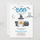 Celebrar o Dia das Bruxas usando o nosso Convite para Chás de fraldas Azul Um Pequeno Boo! Esta design encantadora apresenta um fantasma giro vestindo um chapéu de bruxa e segurando uma abóbora, um gato brincalhão, uma coruja azul adorável, e um caldeirão azul borbulhante. Os morcegos fluem pelo céu, com uma lua brilhante e estrelas cintilantes se somando à atmosfera mágica. BBS455
