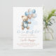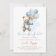 O convite para chá de fraldas Trendy Blue Boy com ursinho de pelúcia fofo com balões de pastel azul e castanho, a frase "É um menino" e azul pastel no fundo. Itens correspondentes disponíveis.