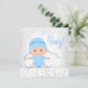 Floco de neve azul no inverno maravilha do inverno convite para chá com um adorável menino no chapéu de inverno e roupa em um lindo fundo de flocos de neve. Este convite de chá de fraldas de inverno em floco de neve azul é facilmente personalizado para o seu evento simplesmente adicionando detalhes do seu evento, estilo de fonte, tamanho de fonte e cor e texto.