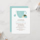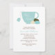 design de chá de fraldas elegante e chic apresenta uma ilustração adorável de uma xícara de chá e três biscoitos de macarrão franceses. Disponível em uma variedade de cores bonitas para combinar com seu tema de chá de fraldas, garota ou neutro.