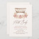 Convide amigos e família para comemorar um pouco no caminho com este convite de feiticeiro, com um bassinet de aquarela e uma tipografia elegante.