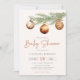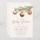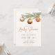 Convite minimalista neutro de gênero para chás de fraldas com ramificação de pinheiros com aquarela decorada com Enfeites de natal.