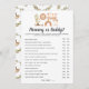 Para um jogo simples e divertido, aliste todos os hóspedes e os futuros pais para jogar trivialidades chás de fraldas. Antes da festa, o(s) host(s) deve(m) elaborar uma lista de perguntas relacionadas à parentalidade direcionadas ao casal esperado e fazer com que o casal anote suas respostas. Em seguida, distribua cópias das perguntas a todos os convidados do chá. Cada convidado ganha um ponto quando sua resposta corresponde ao que o casal disse, e a pessoa com mais pontos depois que todas as perguntas forem respondidas ganha. Para alguma diversão extra, dê ao vencedor um presente de mordaça. Adicione seu texto personalizado a este design usando as caixas "Editar este modelo design" no lado direito do item, ou clique no botão azul "Personalizar" para organizar o texto, alterar as fontes e cores e também adicionar informações ou imagens adicionais a este design. Clique em "Personalizar mais" para abrir as opções de edição de cheio. Se você precisar de algum item de coordenação (cartões de agradecimento, etc.), entre em contato comigo para obter um pedido personalizado. ****Para pedidos personalizados com os quais necessita da minha ajuda, não coloque esta mercadoria no carrinho. Em vez disso, envie-me um e-mail com sua solicitação em lauralise@iyhtvdesigns.com Um link para sua mercadoria será enviado a você por e-mail assim que o item estiver disponível. Você pode usar esse link para fazer seu pedido. Por favor, aguarde até 48 horas.