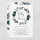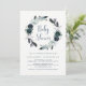 Este convite de chás de fraldas elegante e de moda apresenta uma coroa constituída por flores de pérolas azuis marinhos com folhas, bagas e penas peludas.