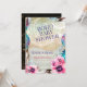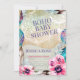 Belo e moderno chá de fraldas de bôho designs: Este convite à terra, hippie, estilo bôho é feito com uma mistura de flores e penas de aquarela, plasmas de ouro, reluzente, junto com design de lua crescente boêmica étnica. Semelhante às luzes turcas vistas nos bazares de Istambul.