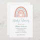 Um belo convite de chá de fraldas com um elemento arco-íris estilo boho, todo texto pode ser totalmente personalizado para a sua celebração familiar.