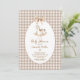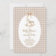 Celebre a chegada do seu pequeno com nosso charmoso convite para chás de fraldas, projetado para dar o tom perfeito para seu evento especial. Apresentando um delicioso cavalo de balanço e um arco na moda contra um fundo marrom quente e gingham bronzeado, este convite inspirado no boho capta a essência de uma acolhedora e acolhedora reunião. A sua elegante design não só transmite a alegria da ocasião, como também serve como uma bela guardiã para os hóspedes. Torne o seu chá de fraldas inesquecível com este belo convite que reflete o seu estilo único e o seu amor pela sua família em crescimento.
