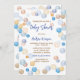 Convites para bebê Bolinhas castanho e azul, Modelo Bolinhas azul personalizado, ideias de Chá de fraldas Bolinhas