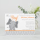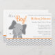 Um convite temático moderno do chá de fraldas do elefante das cinzas e da laranja. Aperfeiçoe para um chá de fraldas do rapaz pequeno.