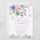 Uma bonito modelo de convite para chá de fraldas de borboleta. Este convite bonito apresenta flores cor-de-água rosa e roxa, borboletas e uma fonte moderna de escrita de caligrafia. Perfeito por comemorar uma borboleta no caminho!