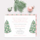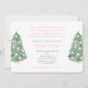 Este design de convite para chá de fraldas de menina apresenta aquarelas árvores de Natal adornadas com ornamentos do estilo "ginger jar" rosa e branco. Elementos de aquarela pintados originalmente por mim. O verso apresenta uma xadrez de tartã rosa e verde.