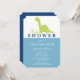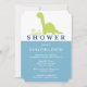 Dinossauro Verde e Azul Bonito Foi Um Convite Para Chá de fraldas. Bolinhas Verde Dino com fundo azul, convite perfeito para um Chá de bebê.