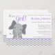 Convites temáticos modernos do chá de fraldas do elefante das cinzas e do roxo. Uma ilustração doce do elefante é perfeita para um chá de fraldas da menina.