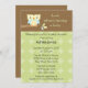 Comece seu evento fora do direito com nosso convite moderno do chá de fraldas da coruja que caracteriza a coruja pequena a mais doce que senta-se em um ramo de árvore ajustado em um fundo marrom com luz - bolinhas verdes. Aperfeiçoe para um chá de fraldas do menino, o chá de fraldas da menina, ou um chá de fraldas neutro. Apenas personalize com sua informação e você é todo ajusta-se para ir! Artigos de harmonização que incluem o porte postal do chá de fraldas, etiquetas do favor, obrigado carda-o & agradecem-n que a as etiquetas estão igualmente disponíveis em nossa loja. Estúdio do cacau do ©