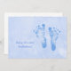 Este é um simples e fofo convite para um bebê chá de fraldas com um conjunto de pegadas de bebê na frente contra um fundo de grunge azul macio.