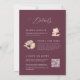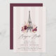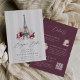 Defina o tom para um chá de fraldas chic e romântico com este convite de Bótamo Bébé de dois lados da Redwood & Vine Design Co. A frente mostra uma Torre Eiffel pintada manualmente, listras cor-de-rosa esbranquiçadas e flores de burgundy esmagadas, enquanto a parte traseira apresenta um fundo de ameixa rico com espaço para detalhes de RSVP, informações de registro e um código QR digitalizável. Perfeito para o outono ou chás de fraldas de inverno celebrando uma menina, este convite combina o estilo clássico parisiense com a conveniência moderna.