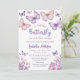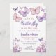 Convite Para Menina Rosa Rosa Púrpura Chá de fraldas Borboleta